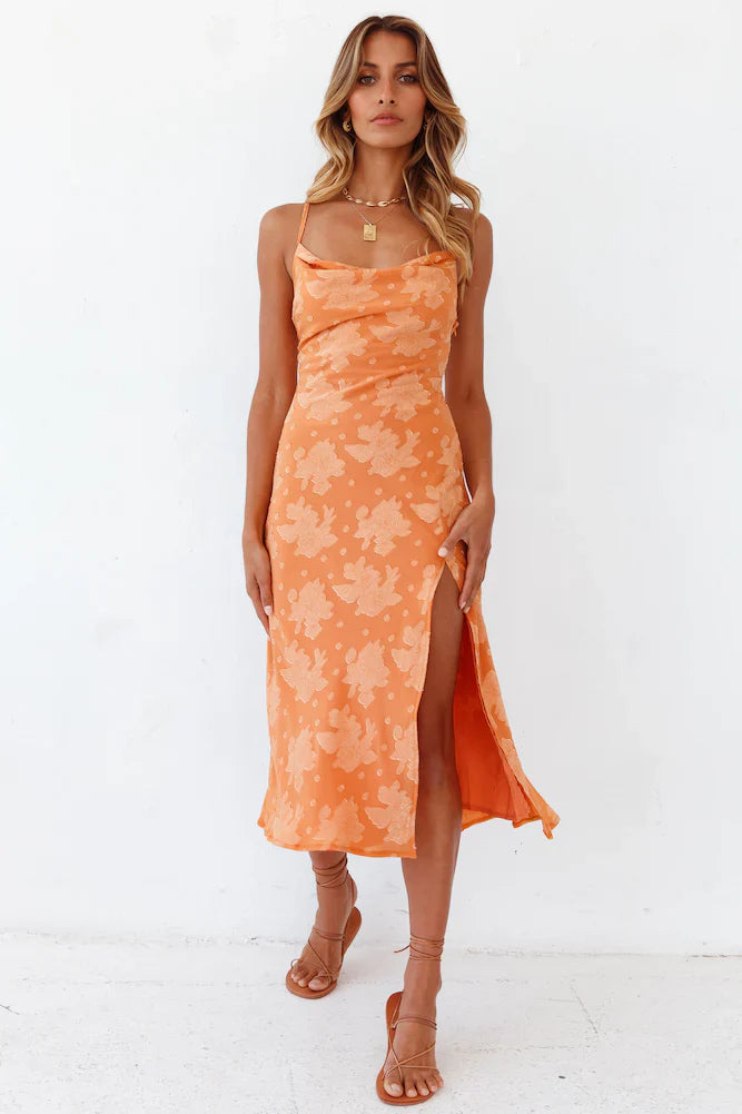 Tangerines, marigolds, sunsets, we're loving everything orange in the Leora Midi Dress! We're styling ours with heels and gold jewellery.