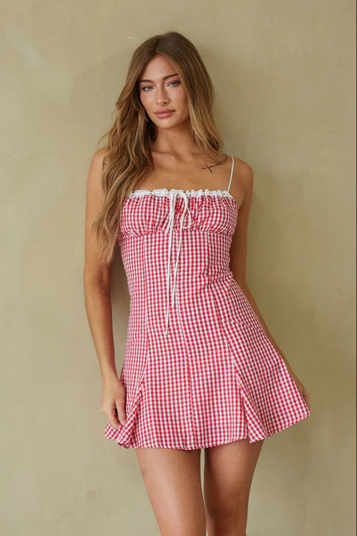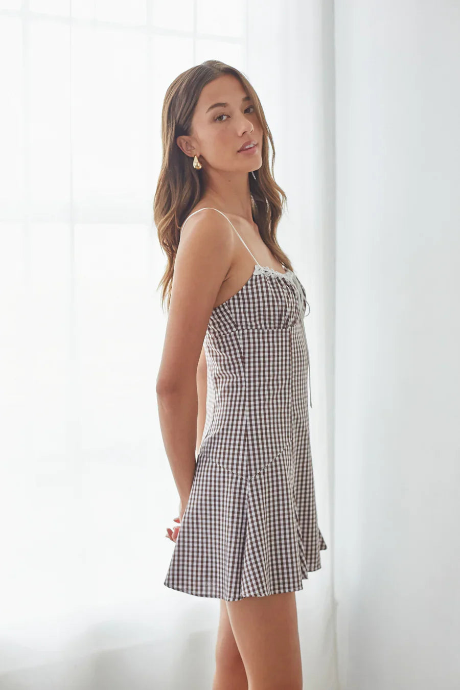 Sunny days ahead in the one-of-a-kind Liv Gingham Fit and Flare Mini Dress! This summer features a flattering fit and flare silhouette, charming gingham pattern print, and flirty bustier detailing. Available in Brown Gingham; style with a pair of to polish off the look!