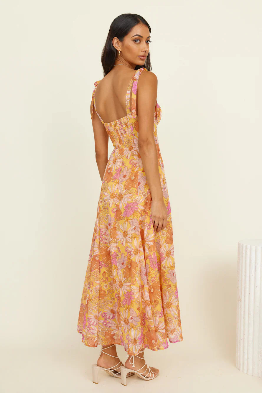 Inspired by the sunsets of Mykonos, our Lost In Paradise Maxi Dress is the essential maxi for your next getaway. Style yours with lace-up sandals and gold adornments.