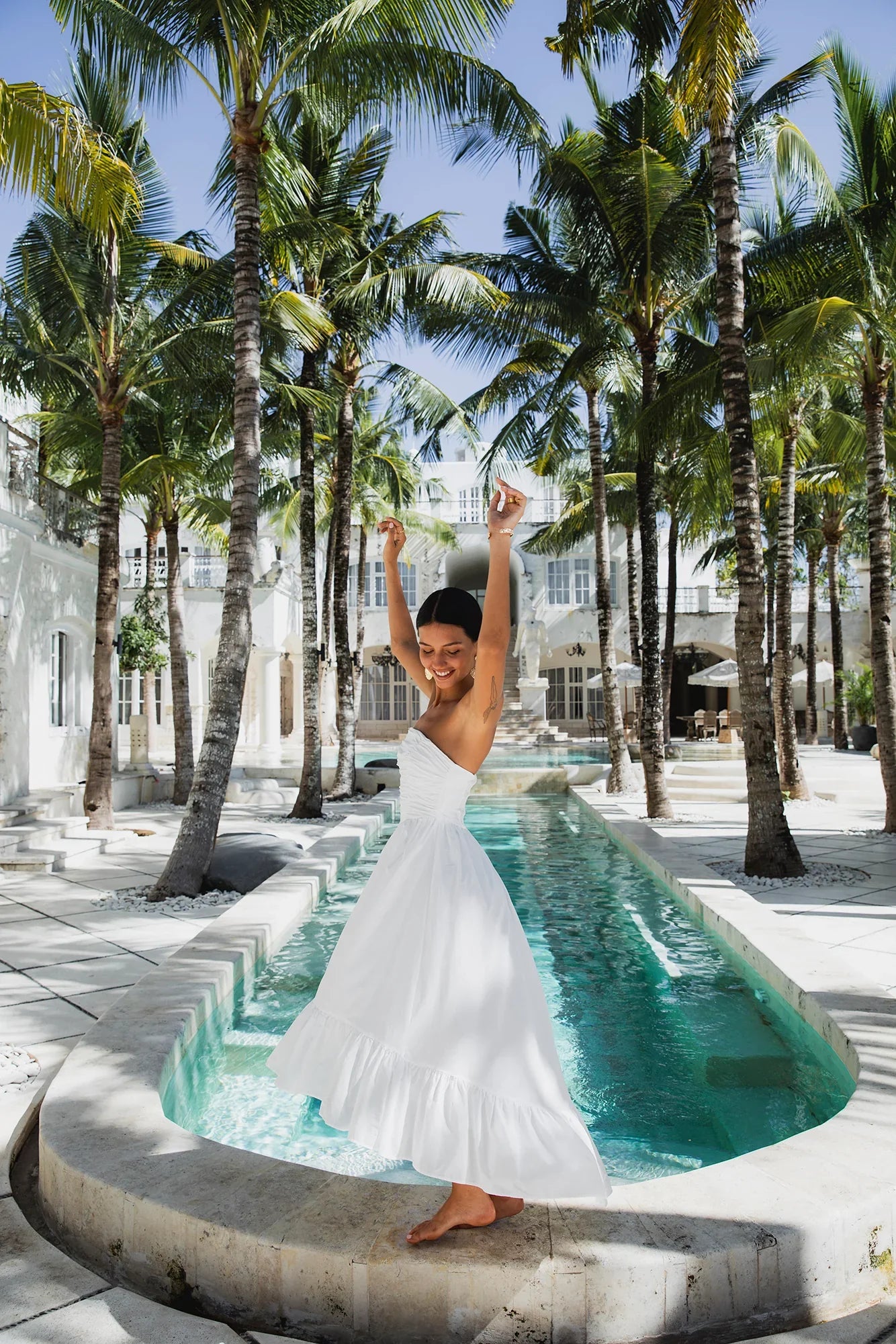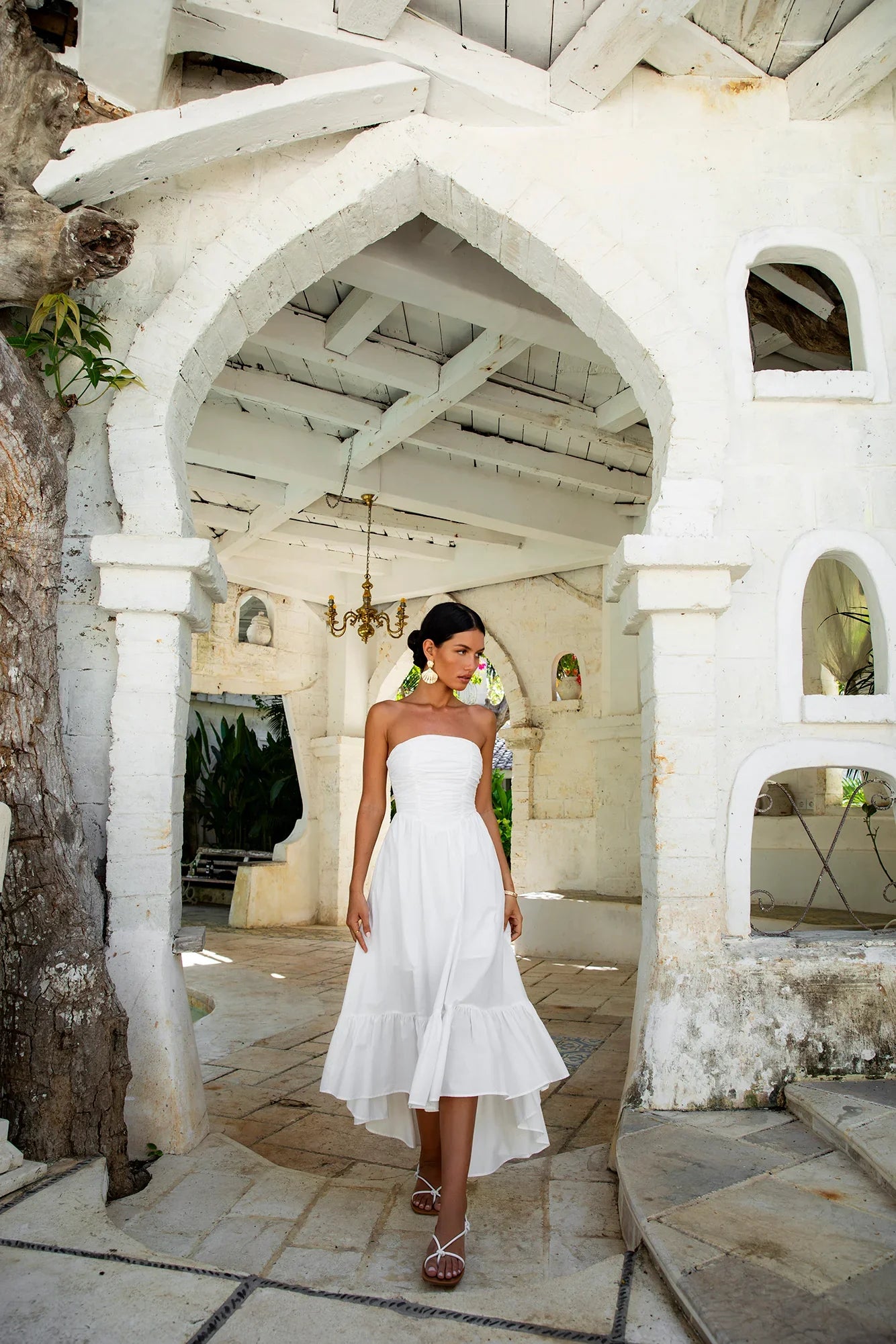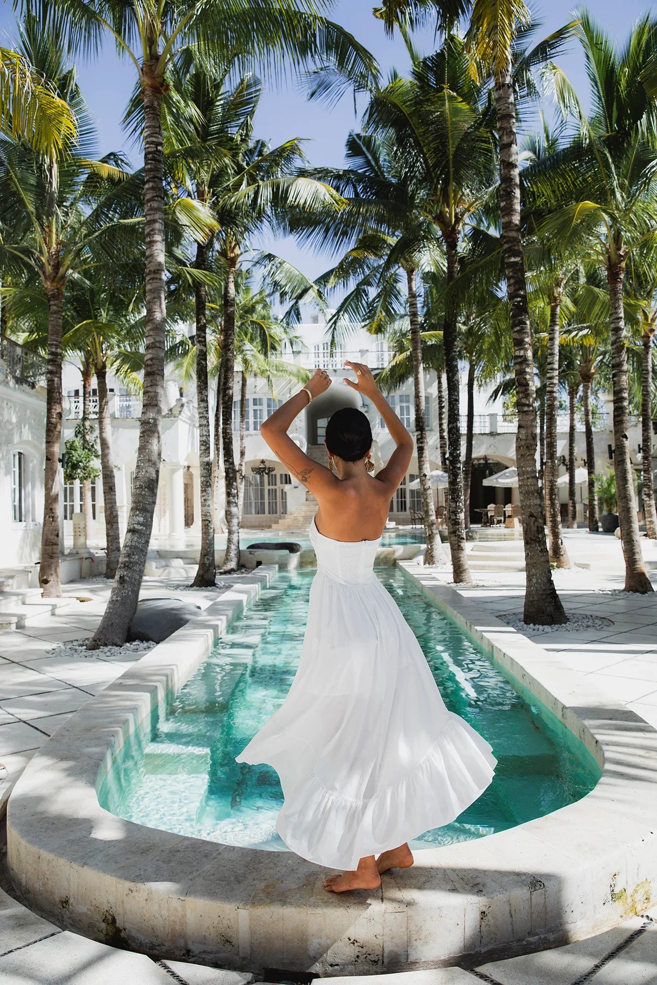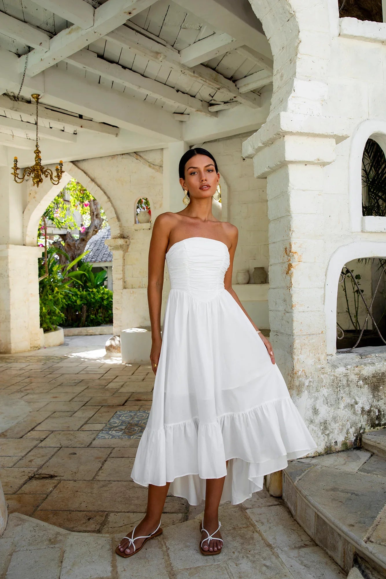 Celebrate summer romance with the Love In The Summer Maxi Dress in White. This ethereal dress features a flowing design and soft details, perfect for creating a dreamy, elegant look for any summer occasion.