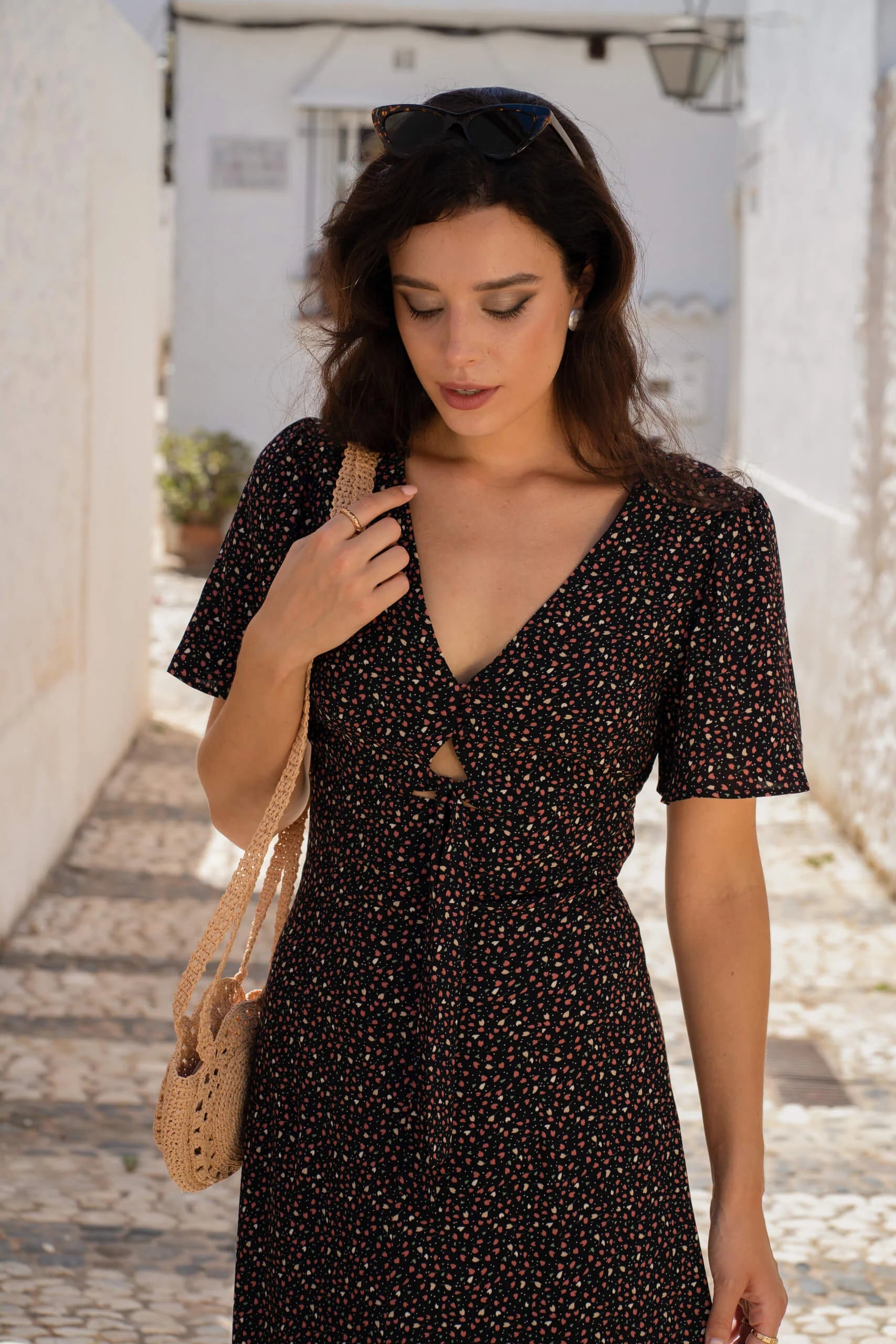 This dress is crafted from luxurious viscose. Style with our upcycled silk Ivy headband and Giulia raffia bag.??