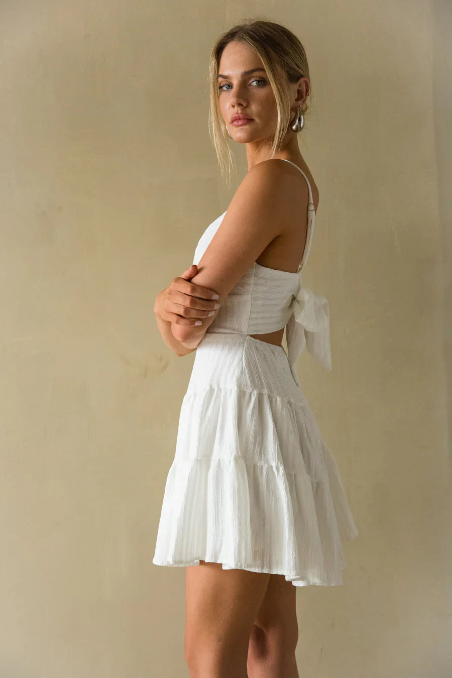 Fit for any mood, the Martina Ribbed Tie Back Mini Dress is the must-have sundress of the Summer! This fit and flare mini dress features a beachy ribbed texture, open tie back back detail, and bustier style bodice! Available in White, Green, and Black. to complete the look!