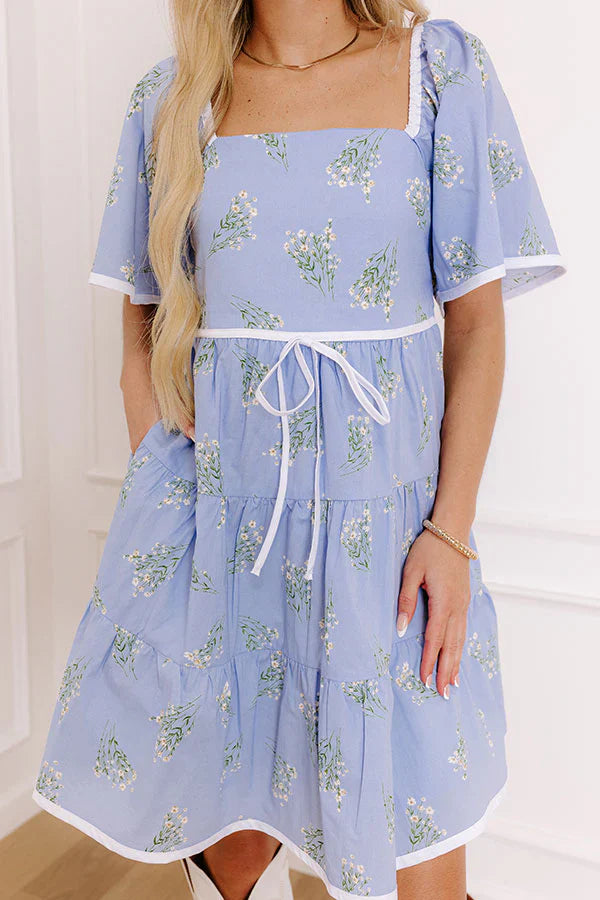 - This cutie is inspired by fields of whispering wildflowers! With its fabulous floral print and timeless design, this dreamy dress will make you want to twirl through your day. - Fully lined material with a white, yellow, and green hued floral print - White trim - A square cut neckline - A smocked back with a tie detail - Short butterfly sleeves with elastic shoulders - A waistline with a bow on the front and an elastic back - Hidden side pockets - A flattering silhouette that ends in a straight hemline