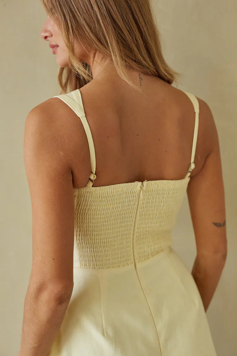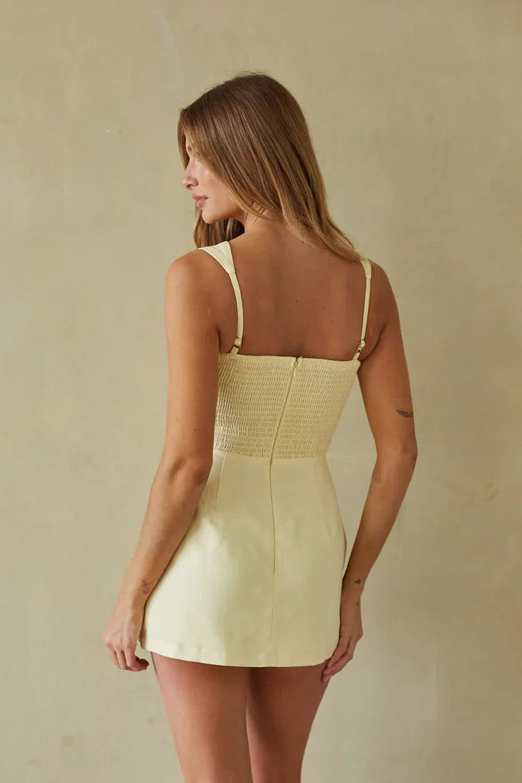 Our best-selling style, the Margaret Romper Mini Dress—now with a fresh new take in breathable linen.