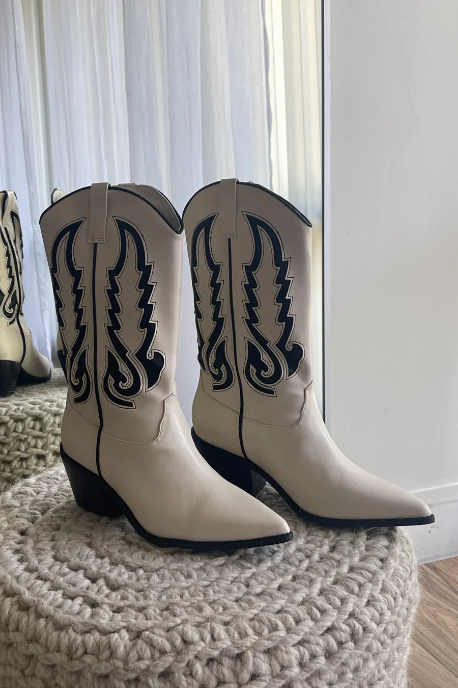 Make a statement in the Norva Western Boots! Take cowgirl to the next level with this trendy ankle boot, featuring bold cut-out embroidery in a western inspired finish. Pair with a to complete the look!