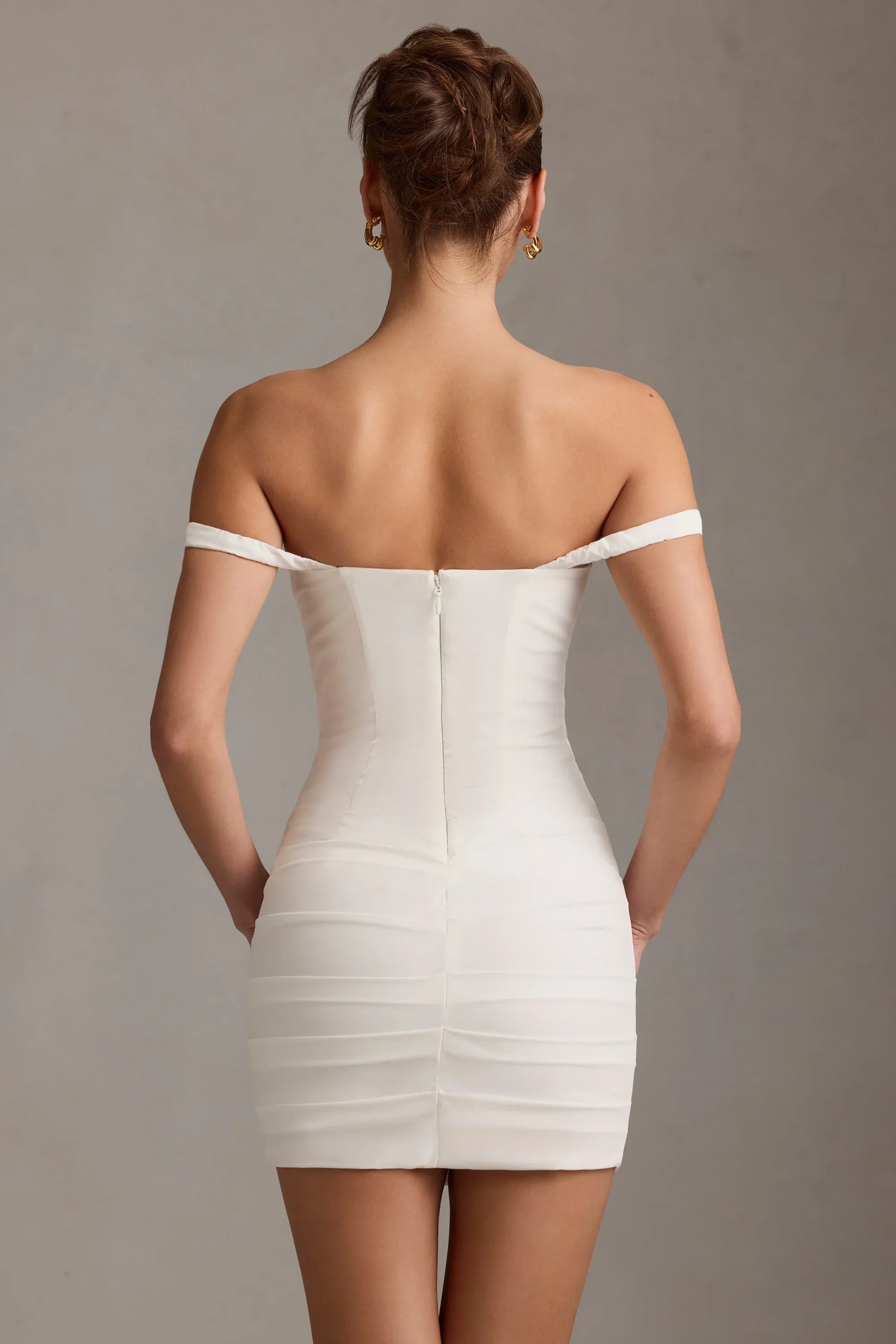 Designed for day-to-night dressing, the Cheyenne mini dress is crafted from premium, lightweight tech nylon taffeta with a touch of stretch to a figure-skimming silhouette framed with off-shoulder straps. The corset-style bodice is enhanced with shaping seams and the bodycon skirt is uplifted with immaculately placed draping for a universally flattering fit.