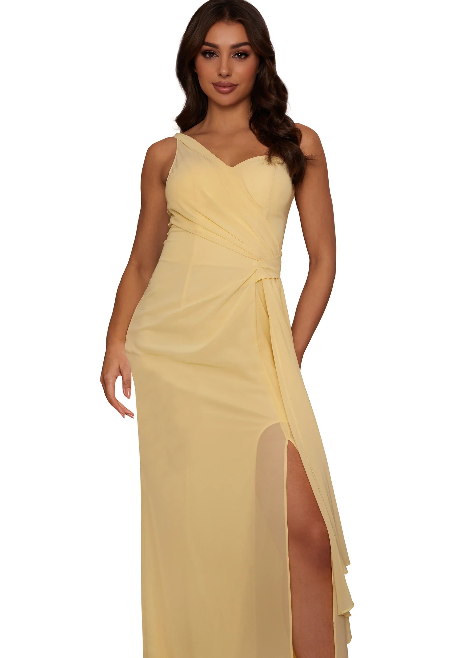 Get the look of this wedding season with this undoubtedly chic dress, a standout lemon yellow hue with a one shoulder design and wrap detailing ensuring that you stand out from the crowd.