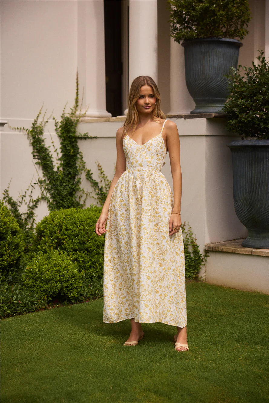 The Painted Skies Maxi Dress in Blue is a vision of elegance and charm, featuring a crisp white base adorned with delicate blue floral patterns. This flowing maxi dress has a flattering V-neckline and a playful back bow detail, adding a touch of romance to its timeless design. Perfect for any occasion, this dress can be styled up with heels and bold jewelry for a sophisticated look or dressed down with sandals and a sunhat for an effortless, breezy vibe. Whether at a garden party or a casual brunch, this dress is sure to make a graceful statement.