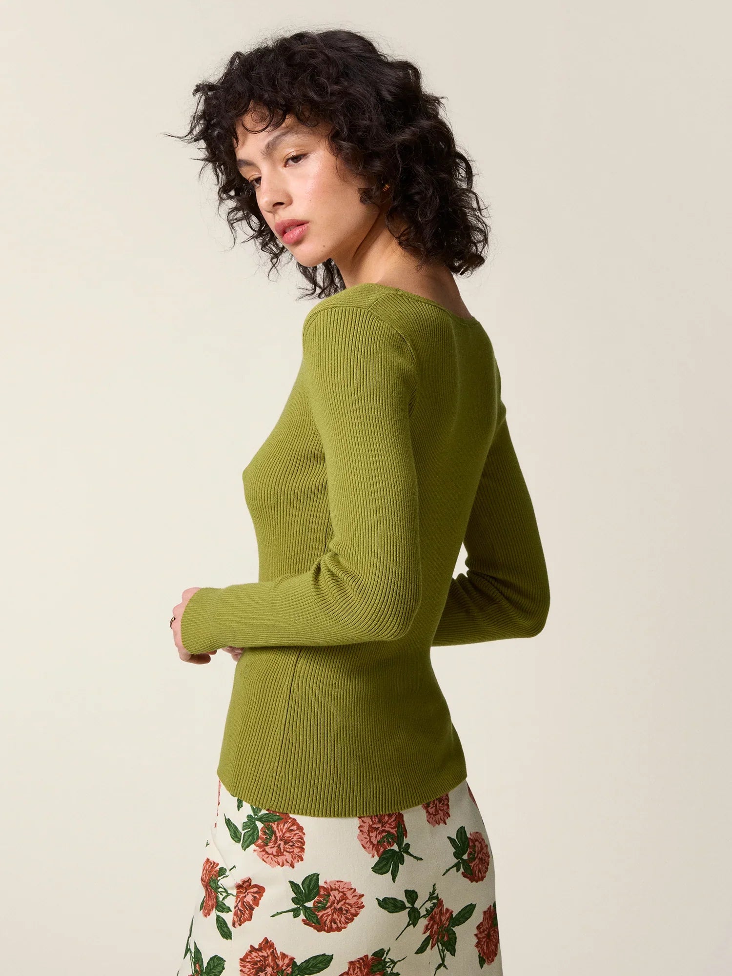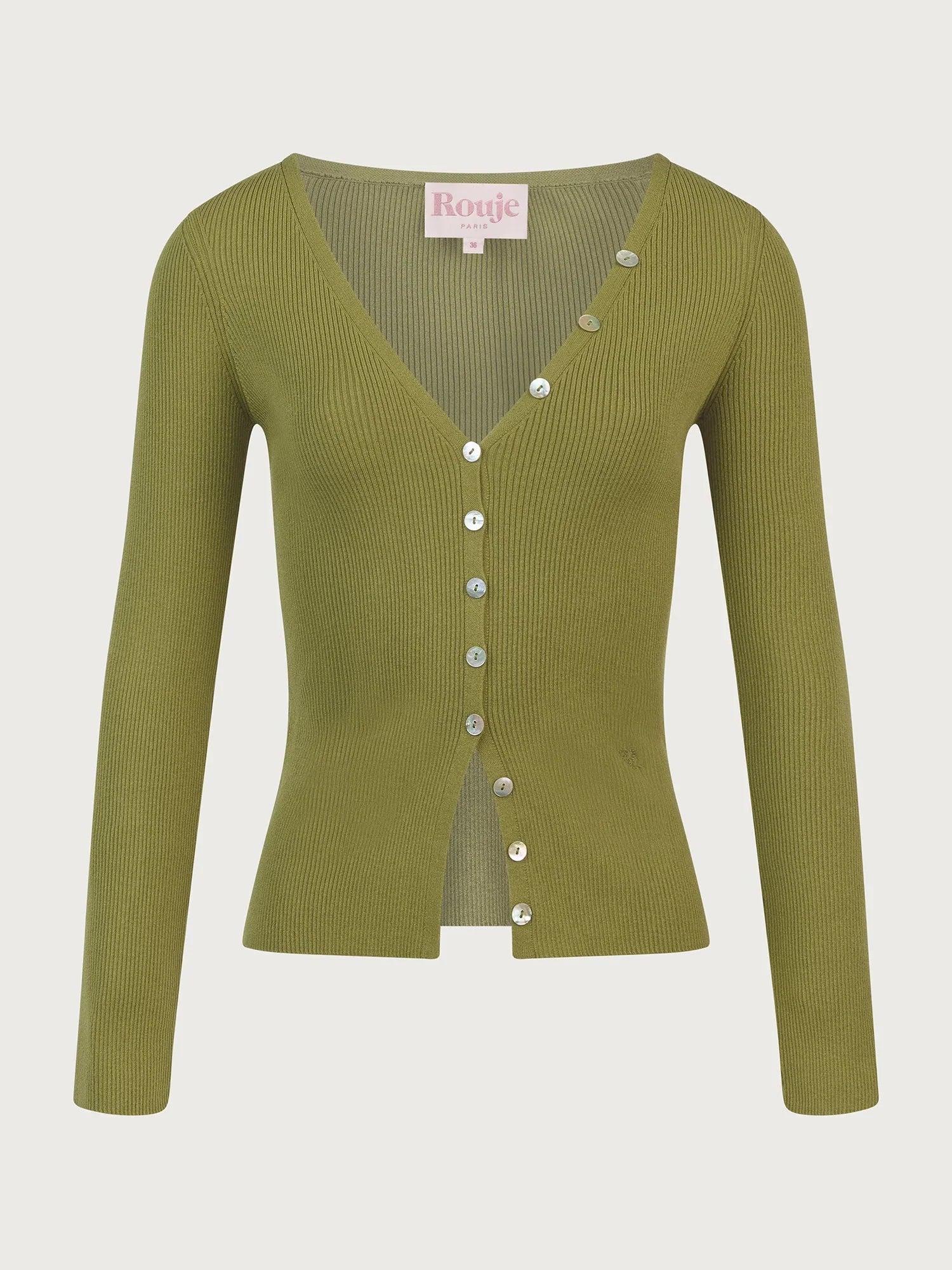 V-neck cardigan with buttons.