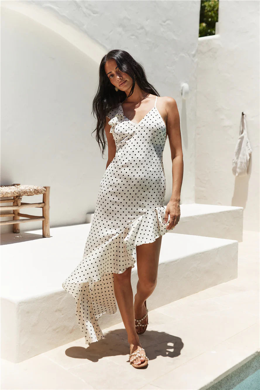The Riviera Satin Maxi Dress in Cream is a fun and flowy maxi dress perfect for making memories and exploring the world. Style this with some platform sandals and loose waves to complete the look.
