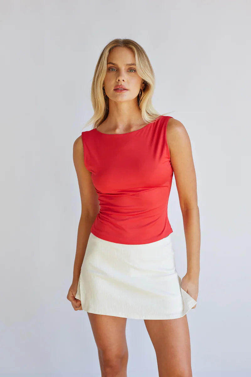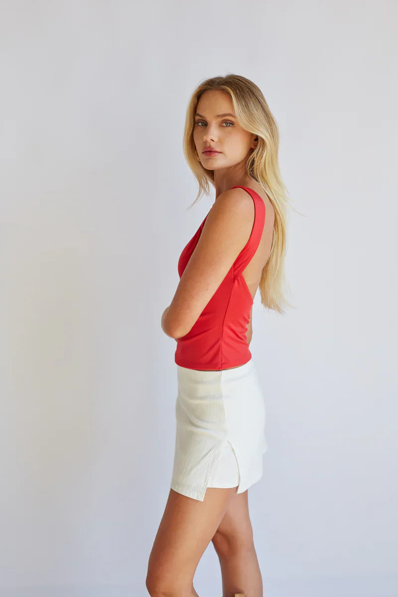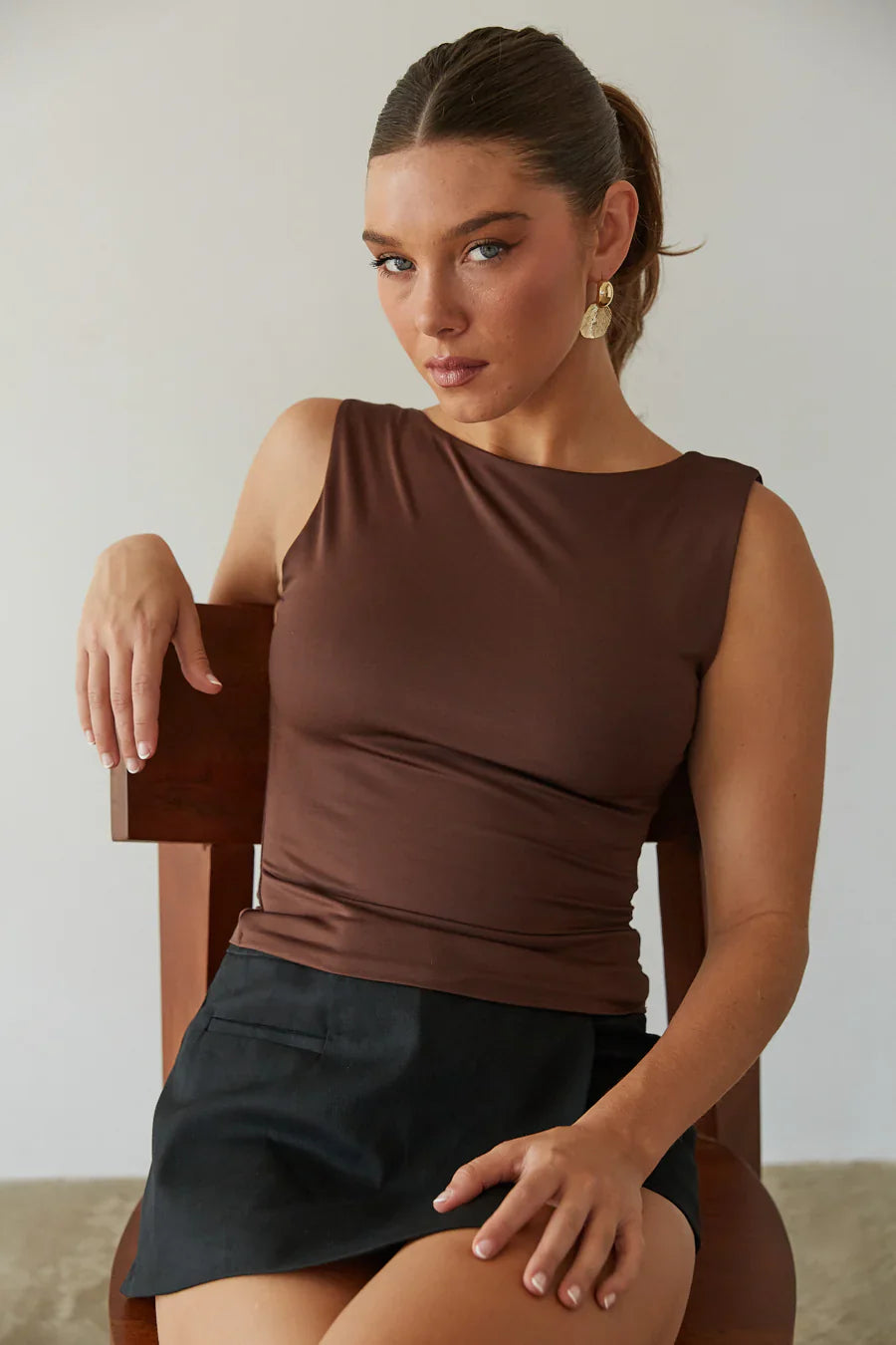Elevate any outfit with the Sana Open Back Tank Top. This boat neck features a sexy low back, cropped fit, and butter soft fabrication! Available in Sage Green and Chocolate Brown; style with a to complete the look!