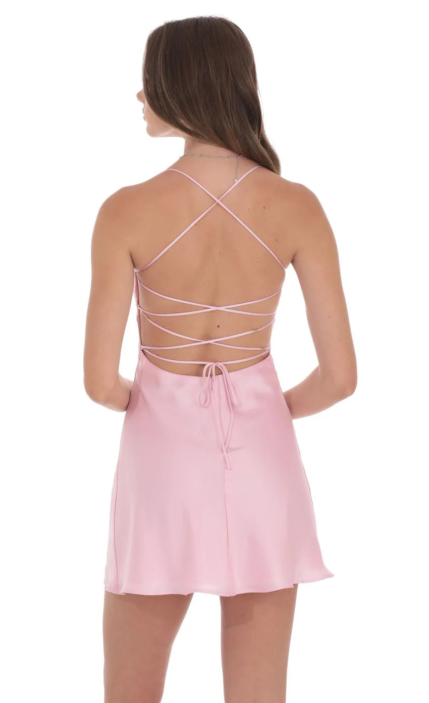 - Zipper and back tie closure