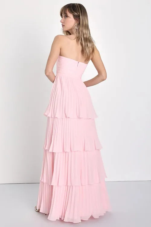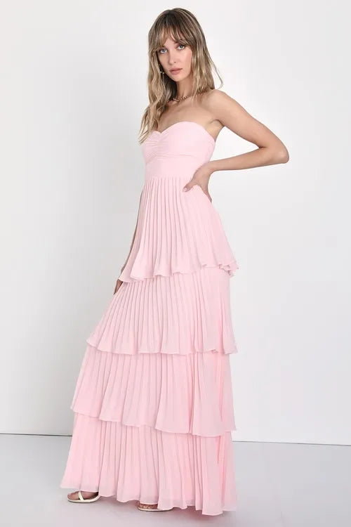 Sweeping everyone off their feet is so easy when you have a romantic look like the Lulus Seriously Sensational Black Strapless Tiered Maxi Dress! Lightweight pleated woven chiffon shapes this flirty dress that features a strapless bodice (with hidden no-slip strips) and a sweetheart neckline. The high, fitted waist tops a figure-skimming, tiered skirt that cascades down to a maxi hem. Hidden back zipper/clasp.