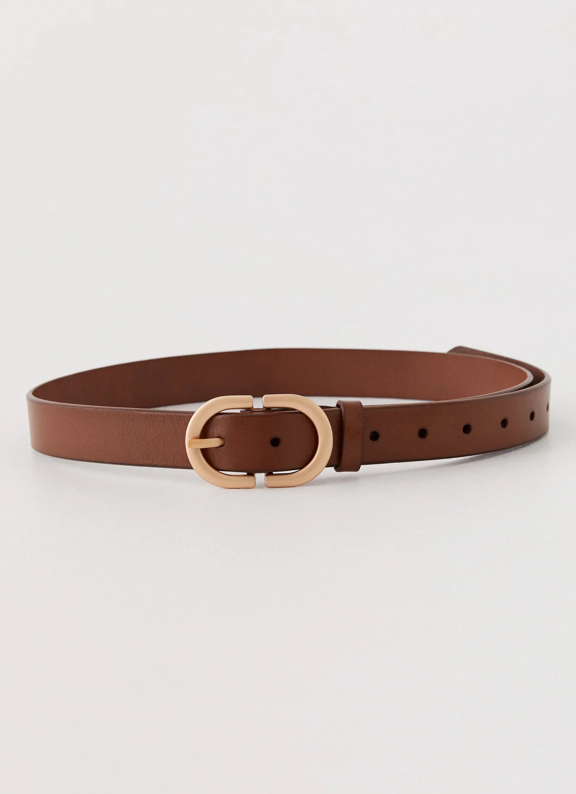 Introducing our Slander Belt. Crafted with rich dark brown leather and adorned with a striking gold buckle, it's the epitome of evening sophistication.