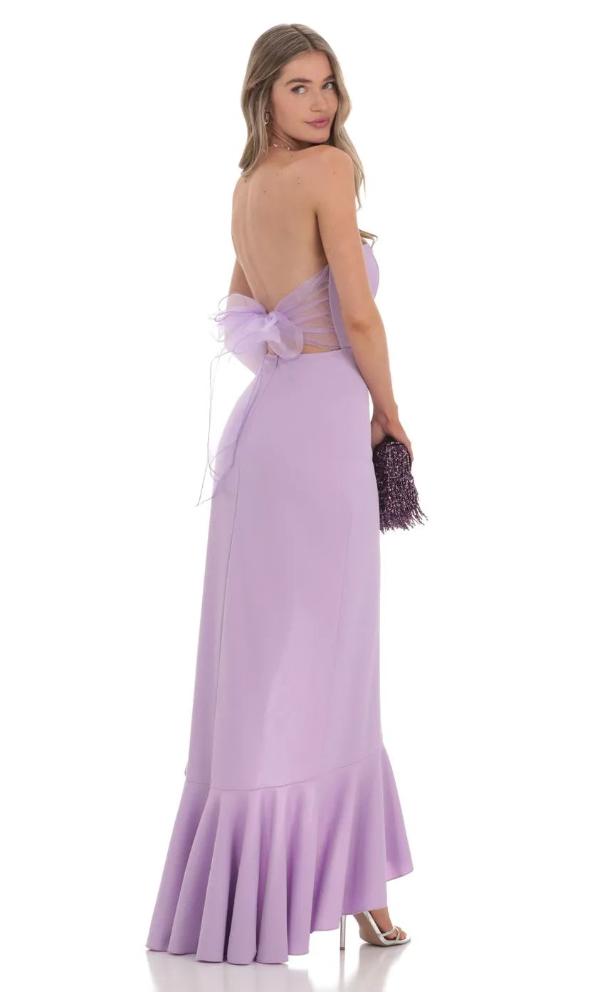 - Zipper and back tie closure
