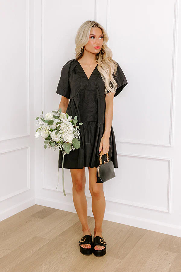 - Get swept away in sweetness with this darling dress! With its adorable pleated sleeves and flirty min dress cut, this cutie will have you tuning heads and spreading sunshine wherever you go. - Lightweight material - A built-in skirt lining - A v-cut neckline - Short, loose sleeves with pleated detailing on the shoulders - Hidden side pockets - A relaxed silhouette that ends in a straight, mini dress length hemline