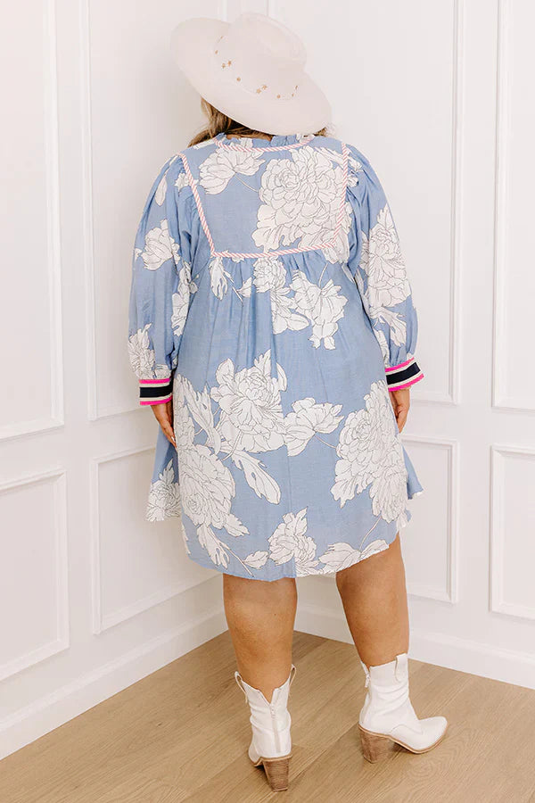 - Say hello to your new go-to for those effortlessly cute days! This floral mini dress is giving all the casual chic vibes, with trendy striped accents that add a fun twist to its flirty style. It's the perfect outfit for brunch, shopping, or just living your best life! - Lightweight material with a sky blue and ivory hued floral print and a built-in lining - Cream and pink hued striped accents - A v-cut neckline with a tie - ¾ length hemline with cream, pink, and navy stripe material - Hidden side pockets - A relaxed silhouette that ends in a mini dress length hemline